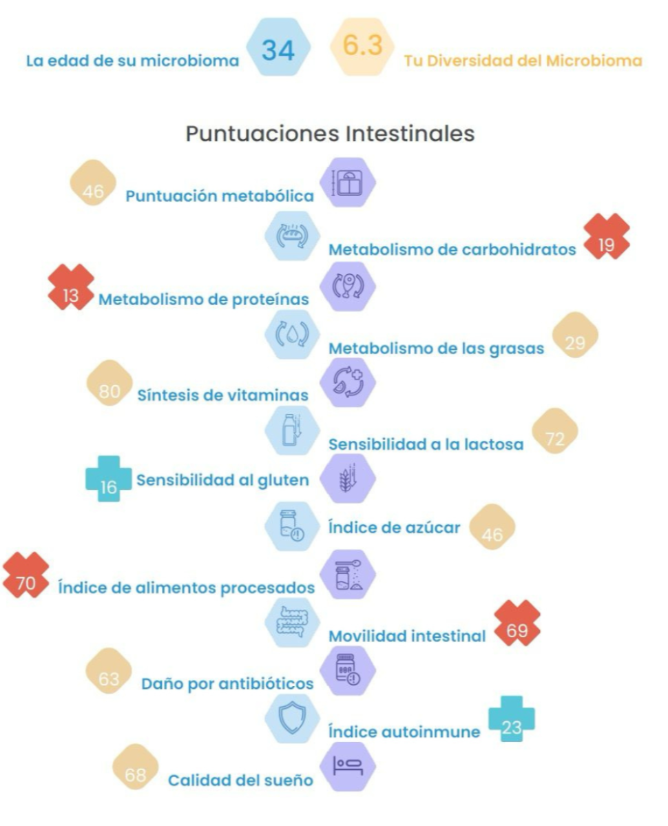 Su organismo es único, y los alimentos y nutrientes actúan como información que le indica qué hacer. Cada persona requiere un conjunto específico de indicaciones para funcionar de manera óptima. Nuestro análisis proporciona parámetros de la microbiota intestinal, junto con recomendaciones personalizadas, y la opción de solicitar consulta con nuestros profesionales que se adapten a tus necesidades, determinados por los resultados de su prueba. De esta manera, le ofrecemos una solución completa, desde el análisis hasta la acción.